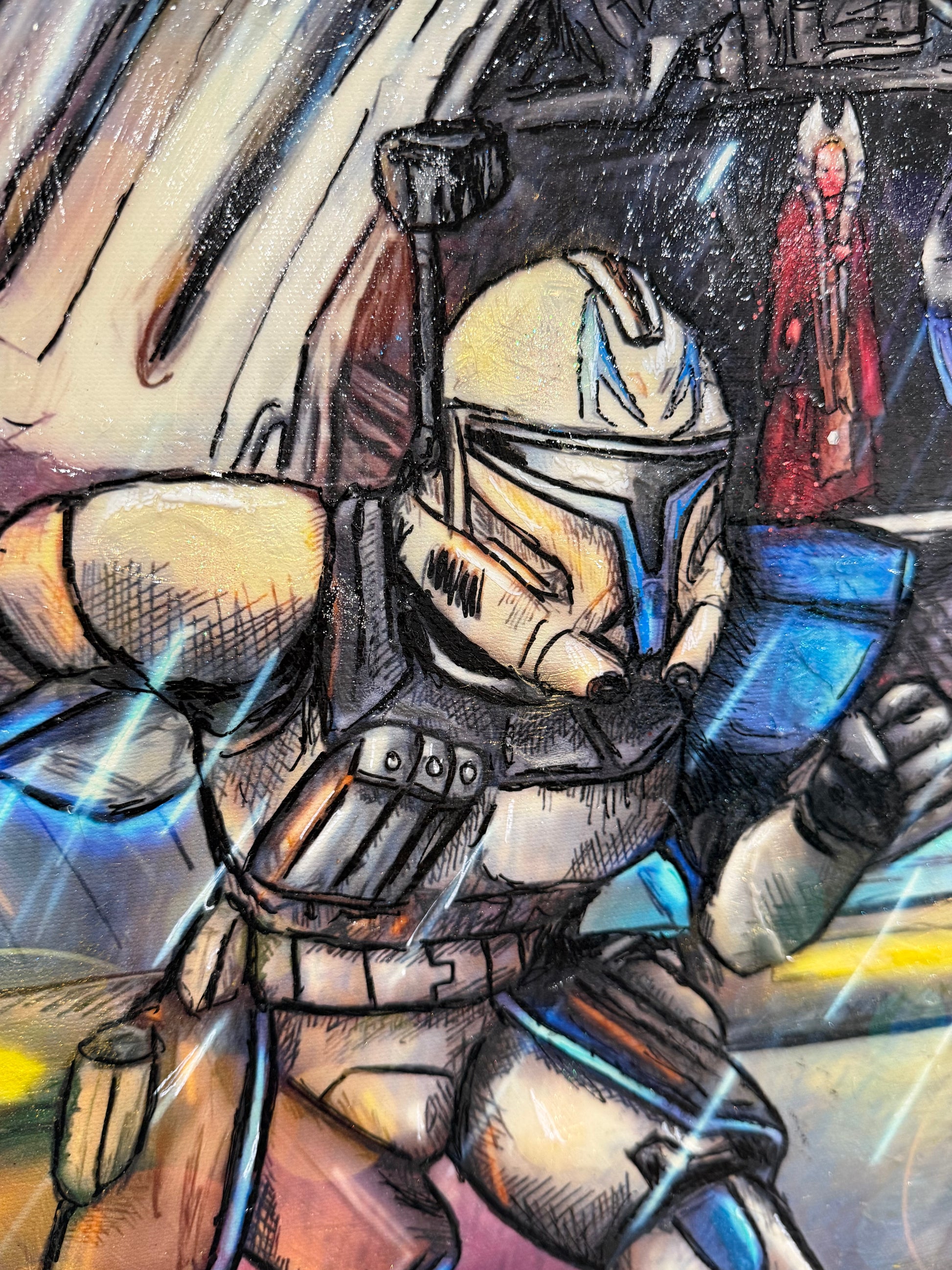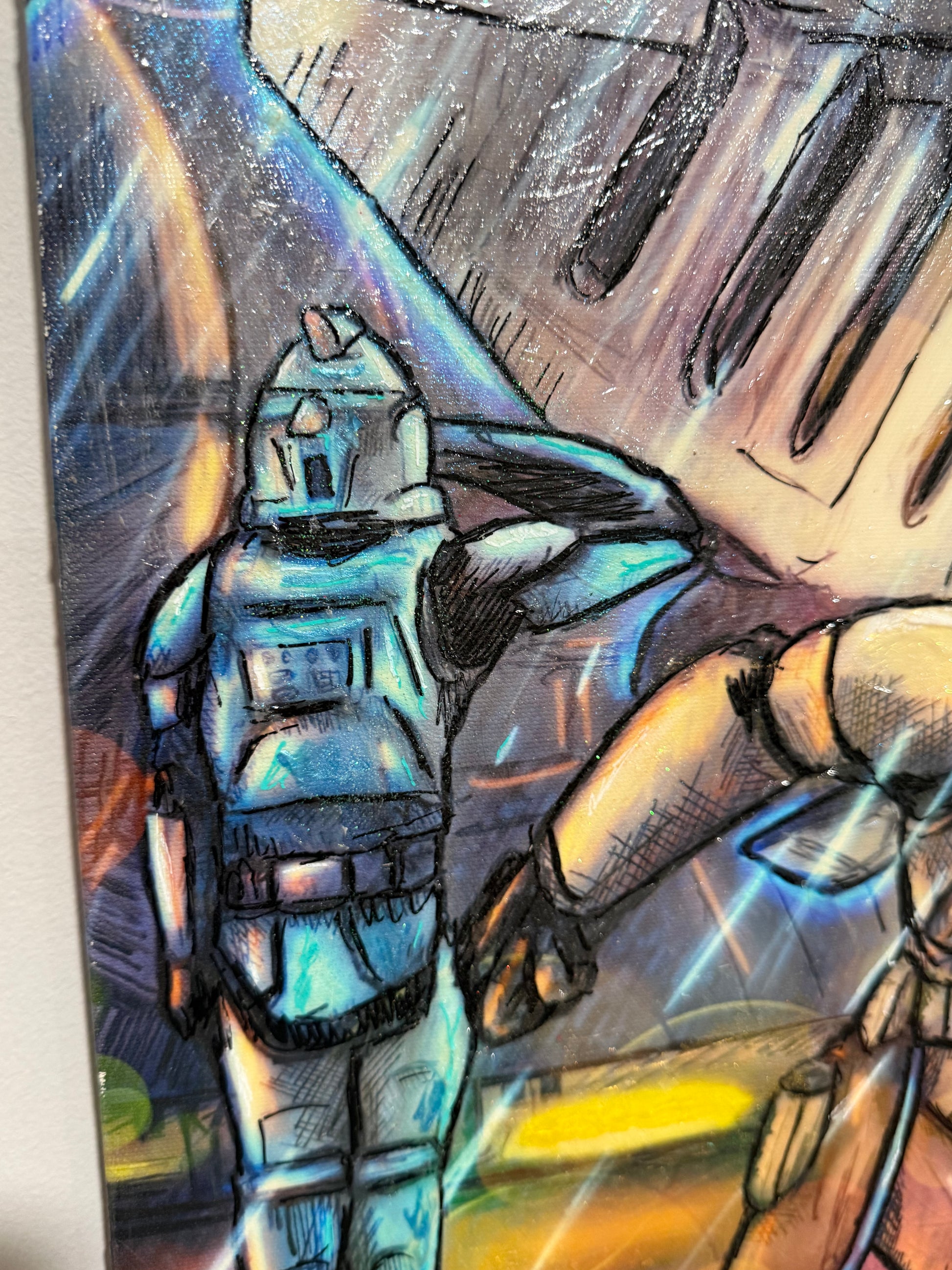 This is a 16x20 Original. While this piece will be painted in 6 other sizes, this is the only one in this size. The paints, powder, and gel application is unique in every painting, making this a one-of-a-kind original.
